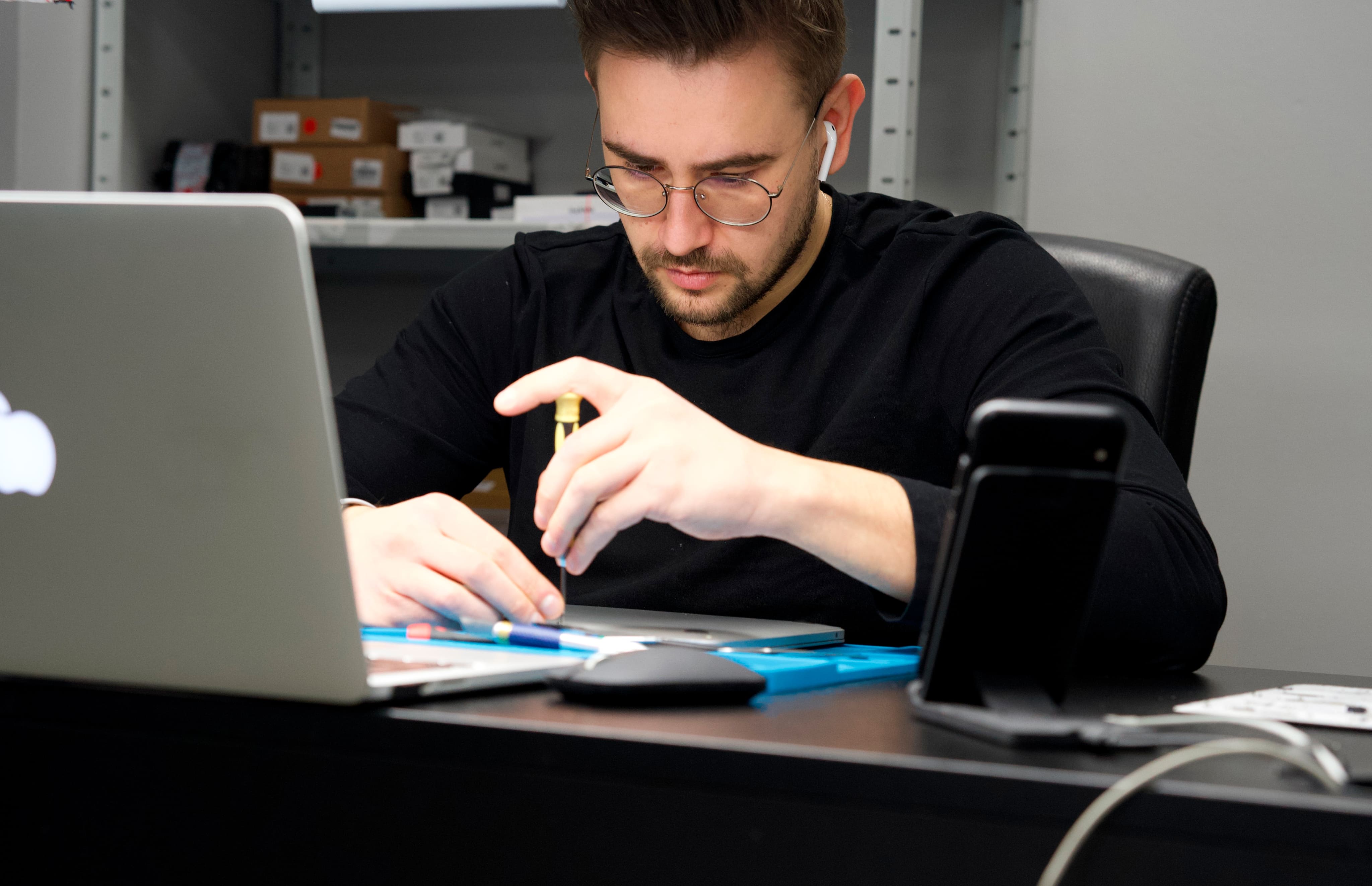 - Привезите устройство в сервисный центр или передайте его курьеру. Мы проведем диагностику и согласуем с вами стоимость ремонта.